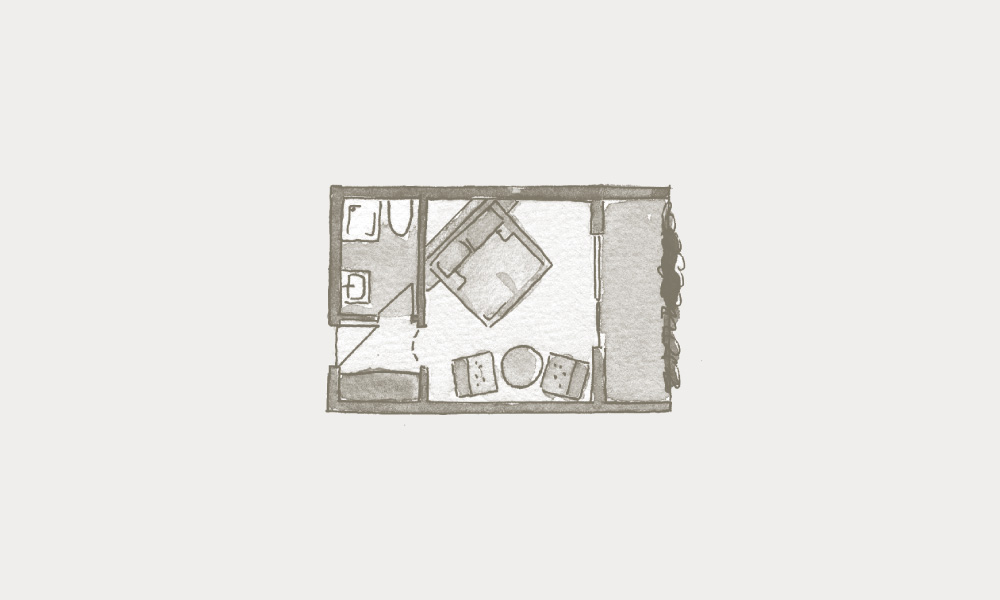 Die Abbildungen und Grundrisse zeigen den Charakter des jeweiligen Zimmertyps. Maße und Möblierung können im Detail abweichen.