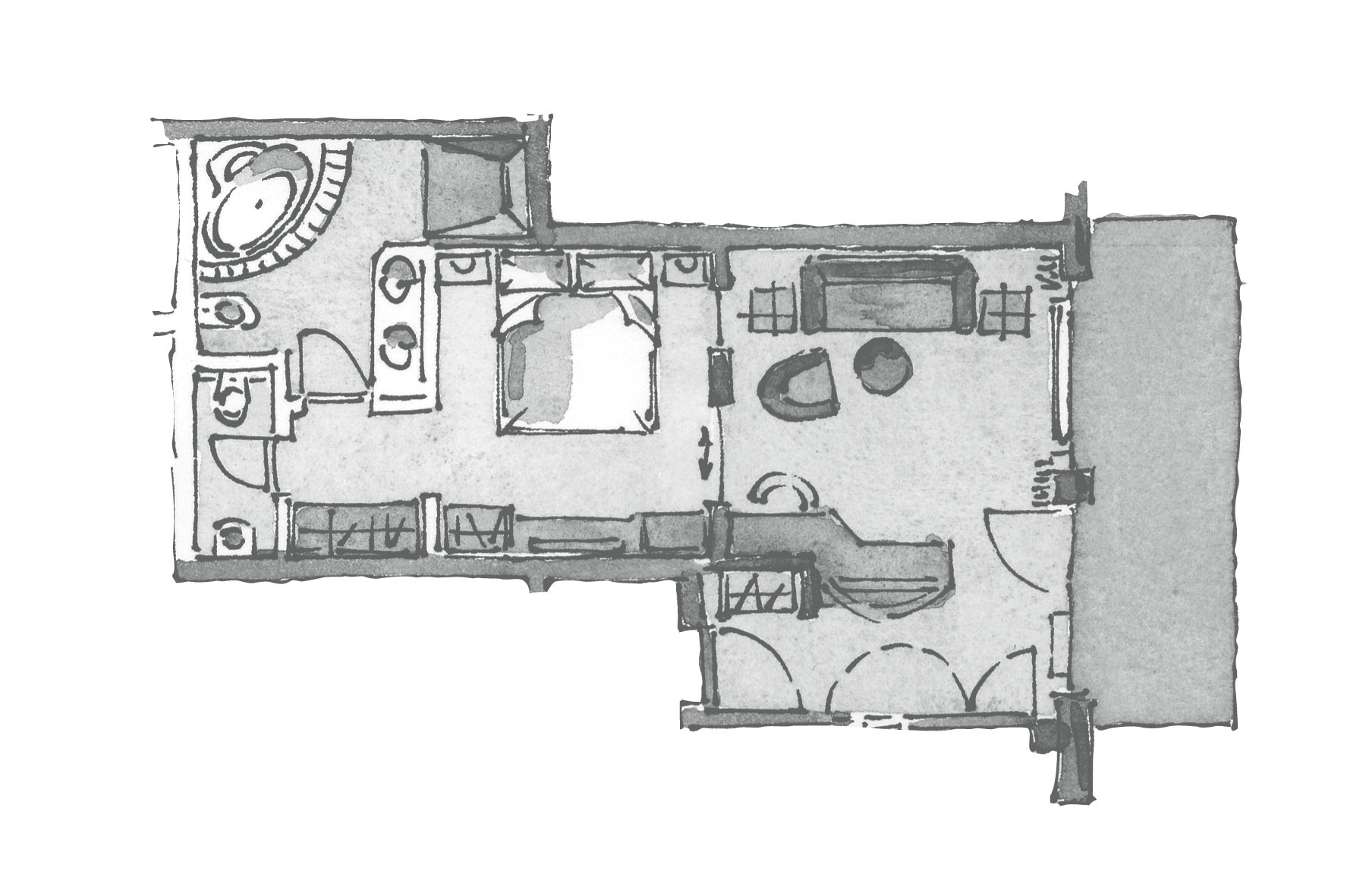 Die Abbildungen und Grundrisse zeigen den Charakter des jeweiligen Zimmertyps. Maße und Möblierung können im Detail abweichen.